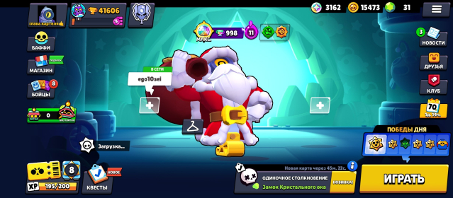 • 15473 монет 💰 / 31 гемов 💎 / 3162 блингов 🎟️ / 629 очков силы 🌟