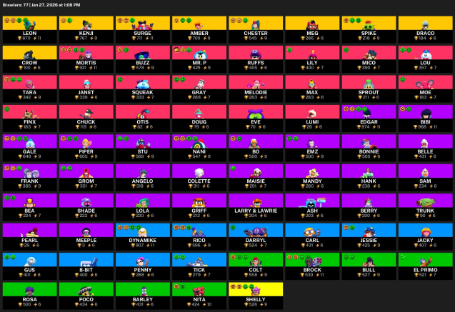 Краткое описание: 🤖Быстрая ВЫДАЧА 24/7🤖 🎟️77 Бравлер🎟️30 049 Кубков🔥124 Уровень💥9 Лег🔥Пожизненная Гарантия💥8-11 Силы🔥