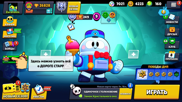 Краткое описание: ✅[Быстрая ВЫДАЧА] 🏆 26828 Кубков 💫 63 Бравлеров 💎 160 Гемов ✅ Тег: #80V0L2PUL