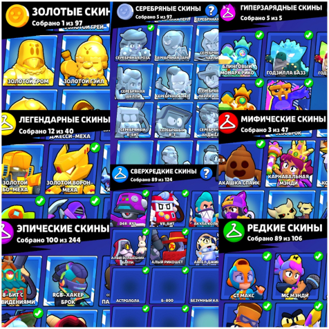 💟 89 Редких 🟢 89 Сверхредких 🔵 100 Эпических 🟣 3 Мифических 🔴 12 Легендарных 🟡 5 Гиперзарядных ⚡