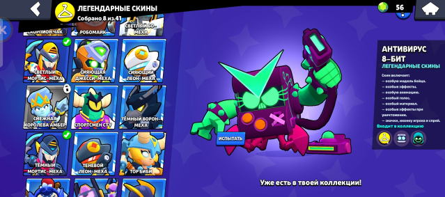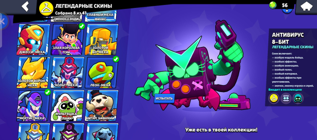 8 ЛЕГЕНДАРНЫХ СКИНОВ💛: АНТИВИРУС 8-БИИ🥶, БЕЗЛИКИЙ КЭНДЗИ🥶, ВОЛЬТ ЛАЙТЕР🥶, ЗЛАЯ КОРОЛЕВА ПЭМ🥶, ЛЕОН-МЕХА🥶, МОРТИС-МЕХА🥶, СВЕТЛЫЙ БО-МЕХА🥶, ТЕМНЫЙ МОРТИС-МЕХА🥶.