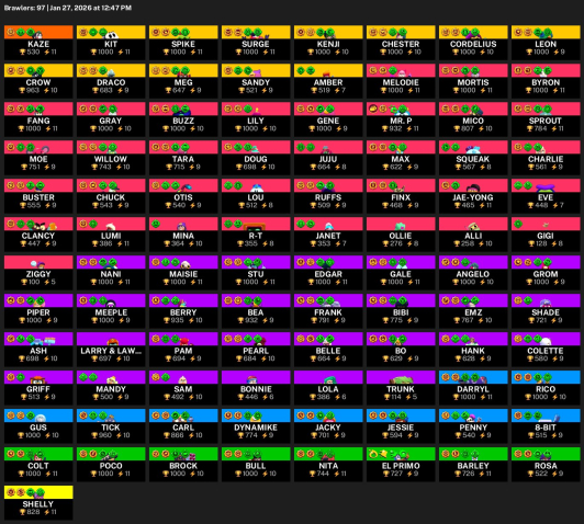 Краткое описание: 🤖Быстрая ВЫДАЧА 24/7🤖 🎟️97 Бравлер🎟️70 557 Кубков🔥224 Уровень💥12 Лег🔥Пожизненная Гарантия💥23-11 Силы🔥