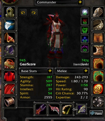 Бис части. Куча полезных мелочей вроде тринкета на скорость на маунте и все аттюны.