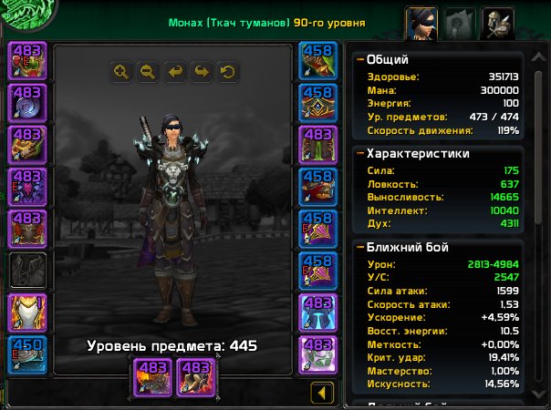 🔥 Монах 90 уровня (474 ilvl PVP, почти фулл арена шмот)