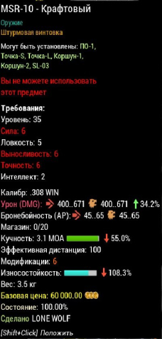 Сервер: RU-1Краткое описание: МСР10 М6 огонь УРОН 400,671:34.2% КУЧНОСТЬ3.1МОА:-55% В НИЗ ИЗНОС- 108.3%минус любой сервер