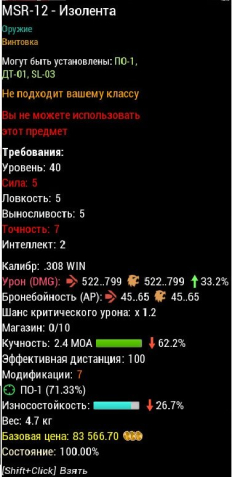 Сервер: RU-1Краткое описание: мср-12 м 7 изолента урон522..799 33.2% 2.4 моа минус 62.2% износ минус26.7%любой сервер