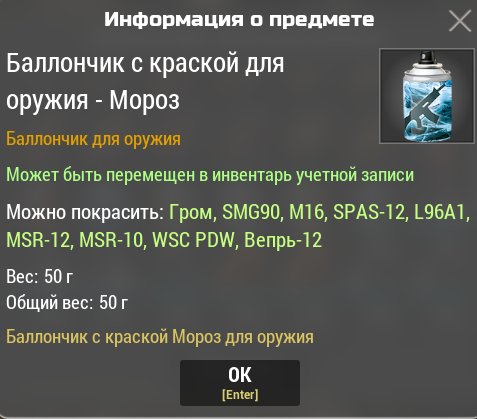 Сервер: Europe-3Краткое описание: Краска «Мороз». Любой сервер