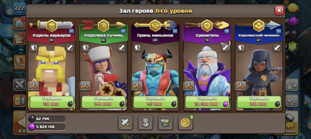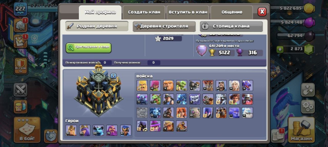 Уровень Ратуши: 17Краткое описание: ⚡️17𝐓𝐇【227𝐋𝐕𝐋】⚡️💎10 ЭПИК СНАРЯГ💎🔵【ГЕРОИ 93/95/70/47】🔵ОФОРМА + 2.9К ГЕМОВ🔵🍀ПЕРЕПРИВЯЗКА🍀