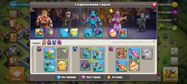 Уровень Ратуши: 12Краткое описание: 💜💜ФУЛЛ 97%💜💜Быстрая ВЫДАЧА💜 💜ГЕРОИ 46/46/31/26🟣🟣12ТХ🔮🔮ОФОРМЛЕНИЕ💜💜