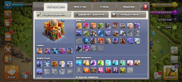 Уровень Ратуши: 16Краткое описание: 【🌴ЛАНДШАФТ x4🌴】【🦸34/48/43/17/15🦸】【🏰16 ТХ🏰】【☠️162 LVL☠️】【⚒️6 СТРОИТЕЛЕЙ⚒️】【🔴⚫🔴РОДНАЯ ПОЧТА🔴⚫🔴】