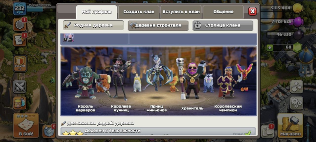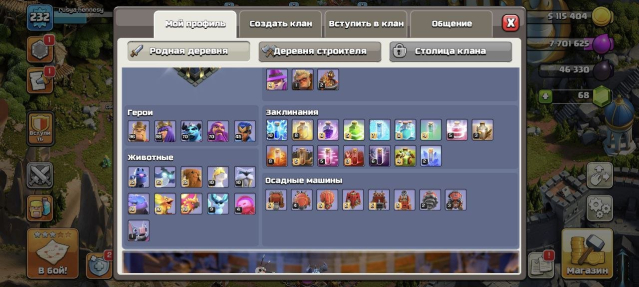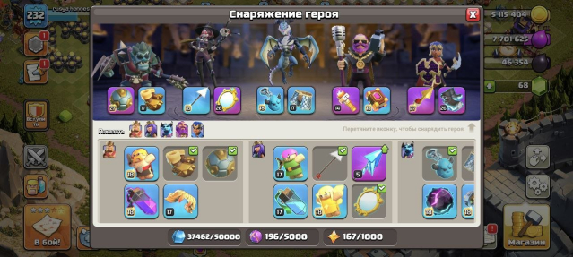 Уровень Ратуши: 17Краткое описание: ⚡️17𝐓𝐇【232𝐋𝐕𝐋】⚡️💎7 ЭПИК СНАРЯГ + ЛЕГ ОФОРМА💎🔵【ГЕРОИ 96/99/71/45】🔵 💙ТОП ЛВЛ ПОМОЩНИКОВ💙🍀ПП🍀