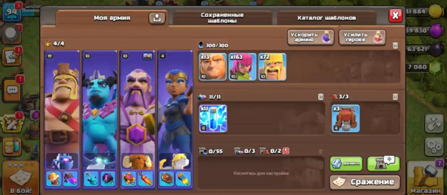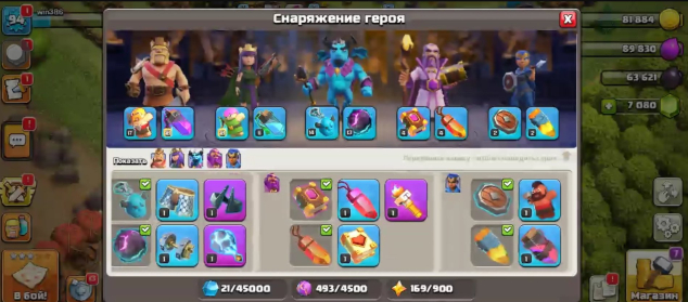 Быстрая выдача [18TX] 💙 5 рабочих + 1500 гемов + Деревня строителя - 4-6 LvL 💜 2-3 епической экипировки, 18 TH