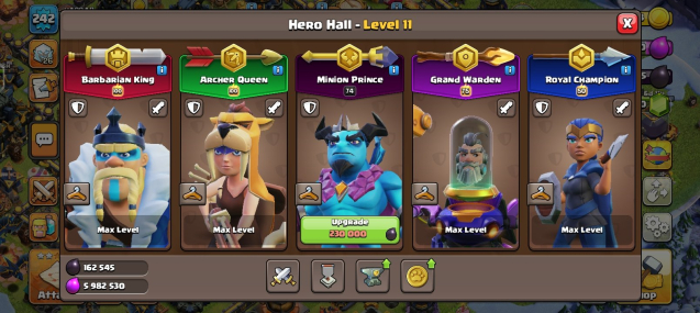 Уровень Ратуши: 17Краткое описание: 🟥⬛🛑Th 17 98% MAX🛑⚫XP 245🛑⚫Heroes Level-K100/Q100/MP75/W75/RC50🛑⚫Gems 185🛑⚫With Gmail🛑⚫Full Access🛑