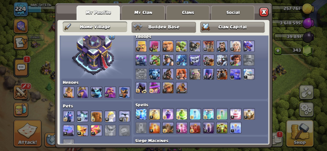 Уровень Ратуши: 15Краткое описание: 💠 FULL TH15 💠 👑 Герои: 75 | 78 | 57 | 57 | 34 🎭 🧱 Забор: Lvl 16 🎁 В подарок клан 10 lvl! 🏰✨