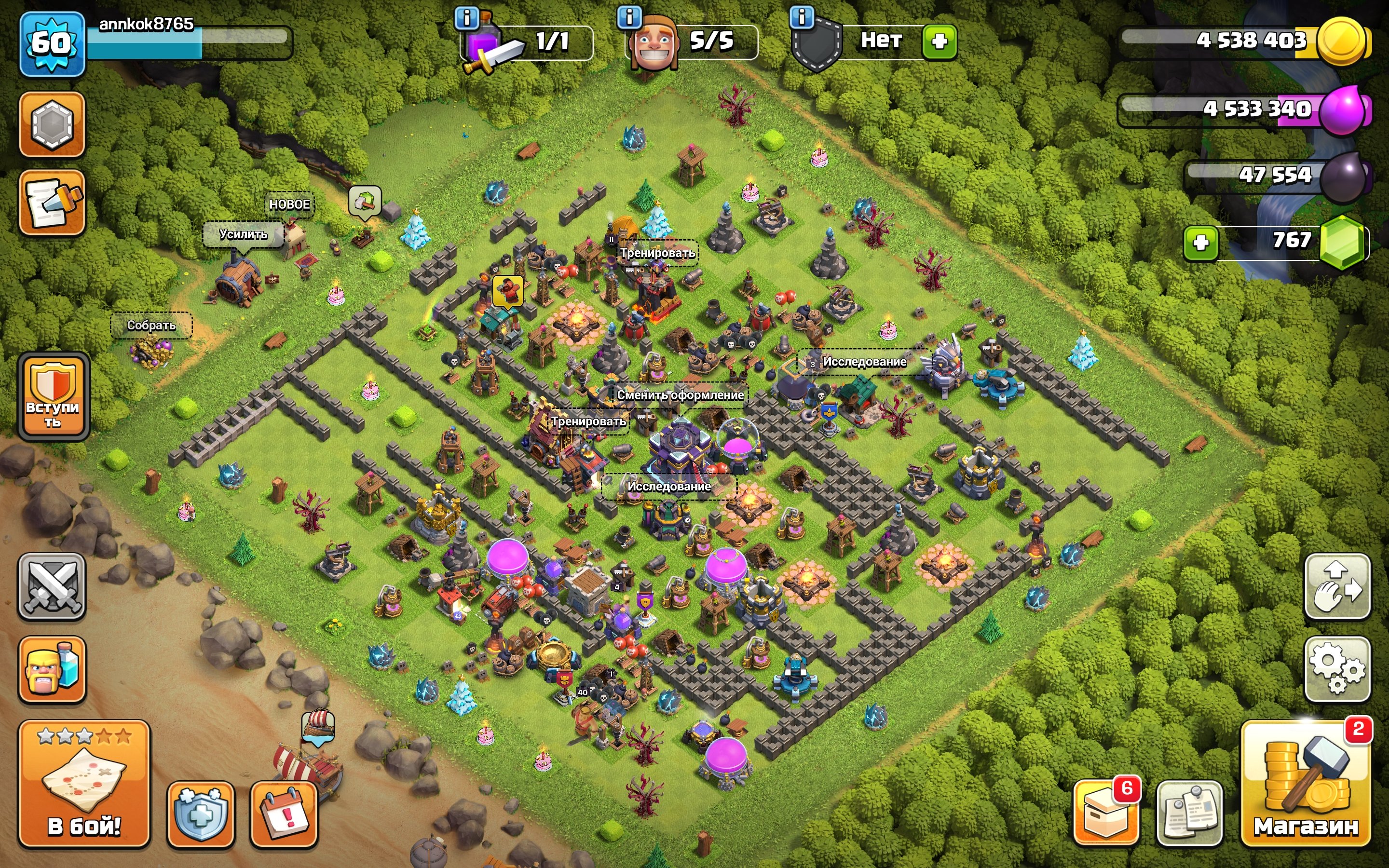 Уровень Ратуши: 15Краткое описание: ⚡Быстрая ВЫДАЧА⚡🏰𝟏𝟓 TX🏰⭐𝟔𝟎 𝗟𝗩𝗟⭐💚𝟕𝟔𝟕 ГЕМОВ💚🔨𝟓 РАБОЧИХ🔨👑ГЕРОИ 𝟒𝟎/𝟏𝟏/𝟒/𝟒/𝟑👑