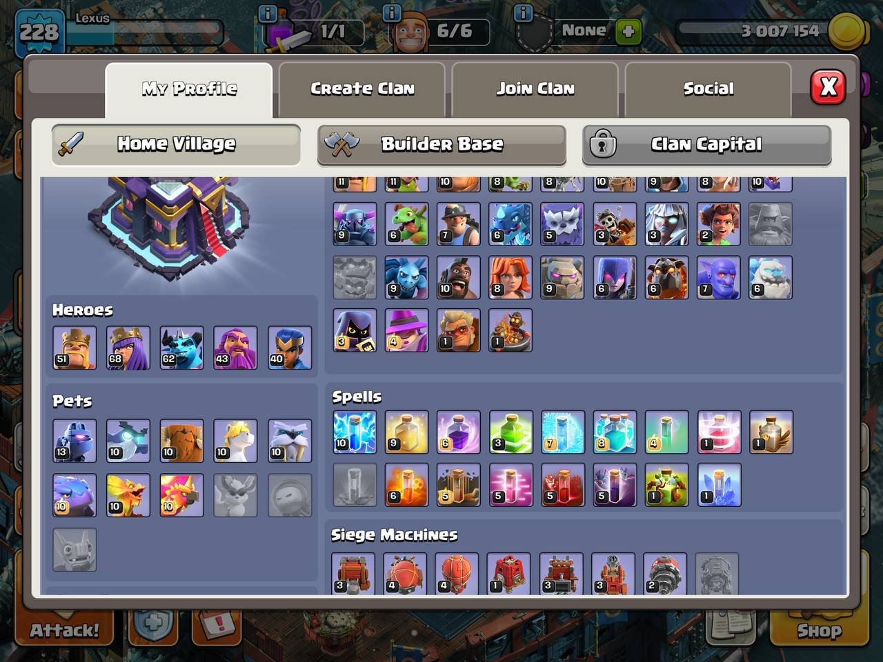 Уровень Ратуши: 15Краткое описание: 💰Быстрая ВЫДАЧА💰ПОЧТИ ФУЛЛ ТХ 15💥СЕТ СКИНОВ💥ОФОРМЛЕНИЕ💥