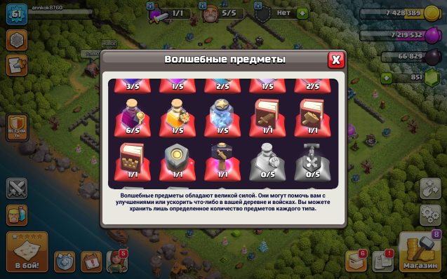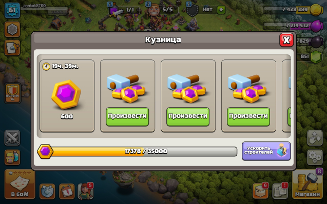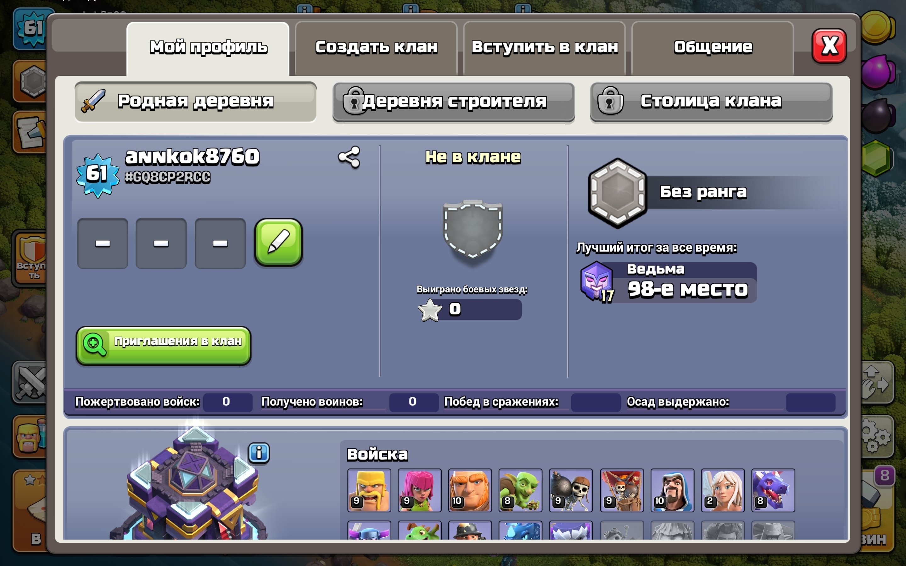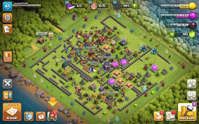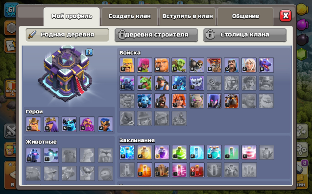 Уровень Ратуши: 15Краткое описание: ⚡Быстрая ВЫДАЧА⚡🏰𝟏𝟓 TX🏰⭐𝟔𝟏 𝗟𝗩𝗟⭐💚𝟖𝟓𝟏 ГЕМОВ💚🔨𝟓 РАБОЧИХ🔨👑ГЕРОИ 𝟒𝟏/𝟒/𝟓/𝟒/𝟑👑