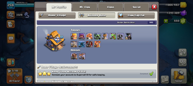 Уровень Ратуши: 18Краткое описание: 🔥🔥🔥【РАТУША 18】【ГЕРОИ-100/101/76/75/50】 【258 LVL】【10 ЕПИК СНАРЯГ】🔥🔥🔥 ✅Почта Gmail✅ 🔐Полный доступ🔐