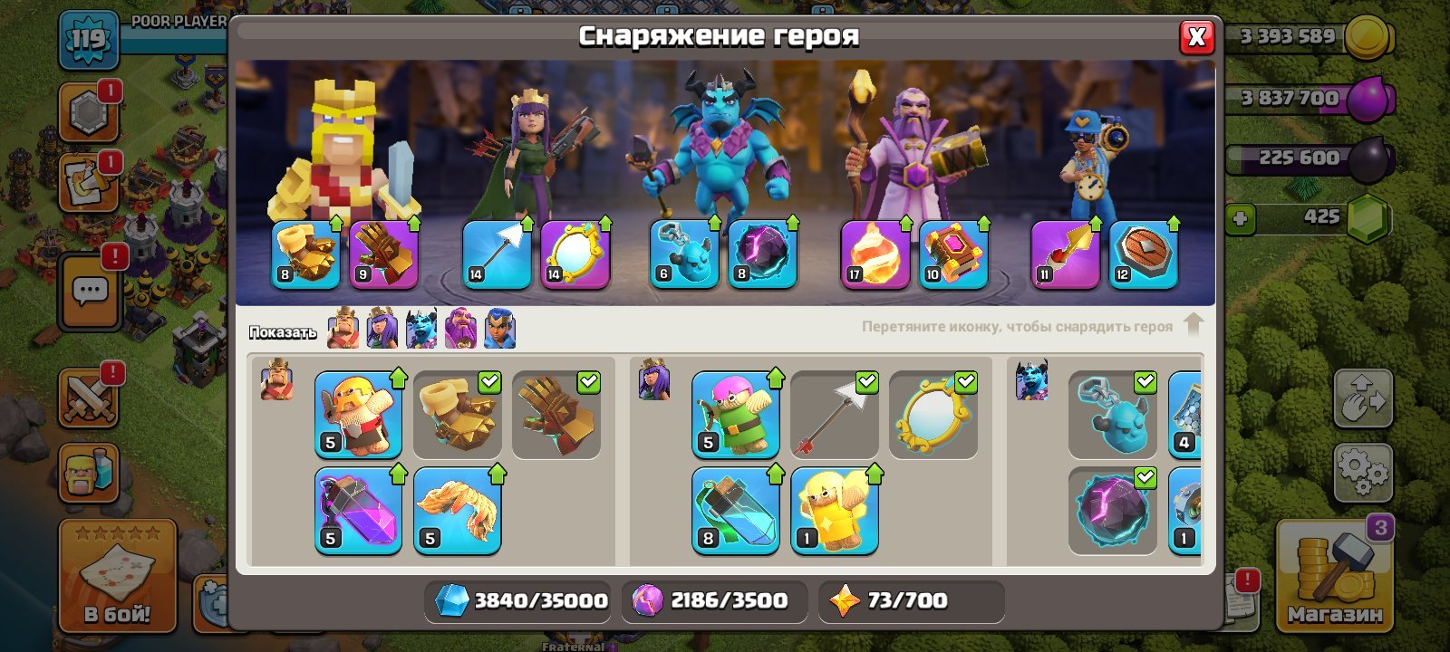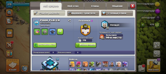 Уровень Ратуши: 13Краткое описание: ПЕРЕПРИВЯЗКА 🍊 СКРИНЫ 🍊 13 ТХ 🍊 90% ПРОКАЧКА ||| 4 СТРОИТЕЛЯ 🍊 ГЕРОИ: 46/50/30/19/17 🍊 7 СНАРЯГ