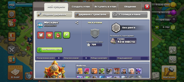 Уровень Ратуши: 16Краткое описание: ПЕРЕПРИВЯЗКА💎140 LVL💎16 ТХ💎5 РАБОВ💎4 ЭПИК СНАРЯГИ💎ГЕРОИ 60/51/46/26/19💎4702 ГЕМА💎СКРИНЫ💎