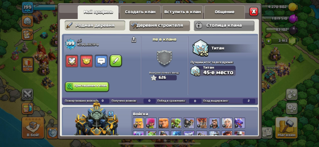 Уровень Ратуши: 17Краткое описание: 🎮Быстрая ВЫДАЧА💚НЕ РАШ🏰17 ТХ + 10 ДС💎3900 ГЕМОВ⭐199 ЛВЛ🦸ГЕРОИ: 74/70/55/55/45