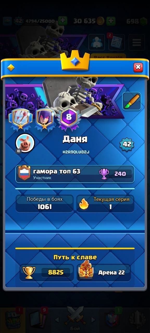 Краткое описание: 🏆𝟴𝟴𝟬𝟬🏆【🌸𝟲 ЭВОЛЮЦИЙ🌸】【🃏𝟭𝟮𝟬/𝟭𝟮𝟭🃏】【✨𝟮𝟱 ЭМОДЗИ✨】【𝟭𝟱lvl МИНИ ПЕККА⚔️】【𝟴 ЛЕТ ИГРЫ】