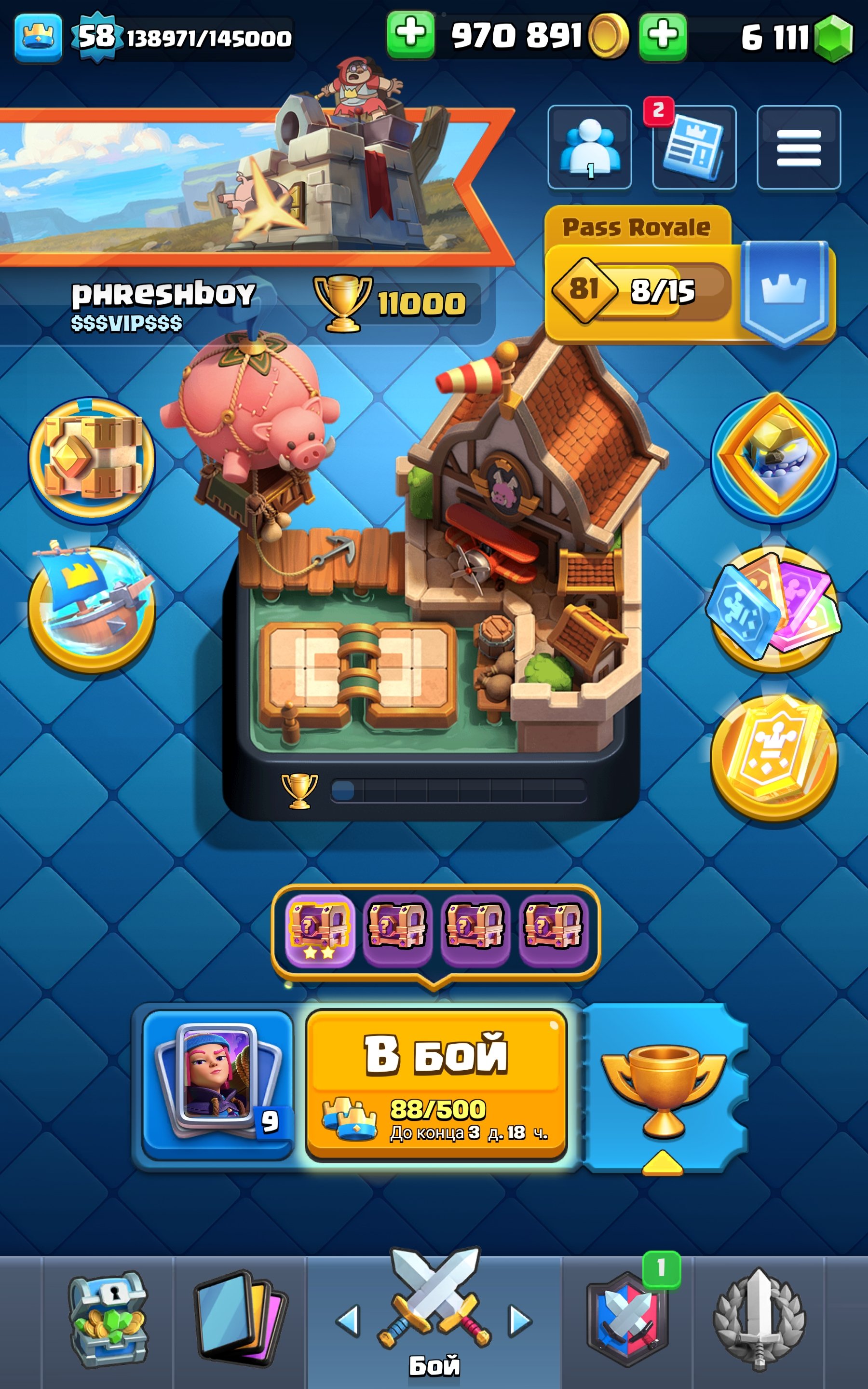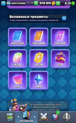 Краткое описание: 🏆11К🏆💎6К ГЕМОВ💰970К МОНЕТ🧬4 ЭВО+5 ОСКОЛКОВ🧬1 ГЕРОЙ🃏3 16 ЛВЛ🃏2 ОЛД ПИНА💬62 ЭМОДЗИ🏰3 БАШНИ💥Быстрая ВЫДАЧА💥