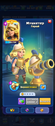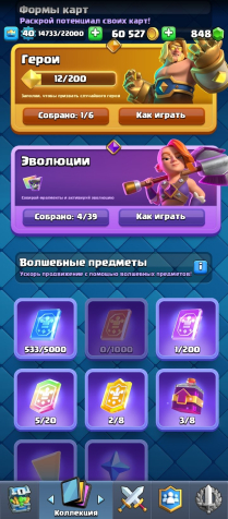 Краткое описание: 🔮4 ЭВОЛЮЦИИ🔮💬33 ЭМОДЗИ💬🏰4 СКИНА БАШНИ🏰⚡5 КАРТ 14 LVL + 6 КАРТ 13 LVL⚡🔥ГЕРОЙ МУШКЕТЕР🔥