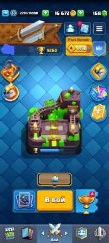 Прогресс: 15 Арена, 5263 кубка, 33 уровень.