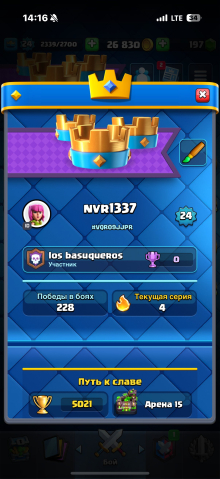 Краткое описание: 【🔐ГАРАНТИЯ🔐】【🏆5021🏆】【👑24 LVL👑】【🌠1 ЭВО🌠】【🃏80 КАРТ🃏】【⭐️1x 11 LVL⭐️】【💬8 ЭМОДЗИ💬】【📨С ПОЧТОЙ📨】