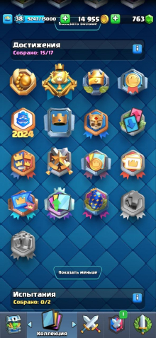 Подробное описание: Clash Royal: Имеется 8000 кубка, лига Мастер 1. 7 скинов на башню. 31 эмоции, 7 из которых эксклюзивные. 15 значков. Около 4 лет игры. 4 эволюции. 13 лвл башни. Нет никого ниже 9.