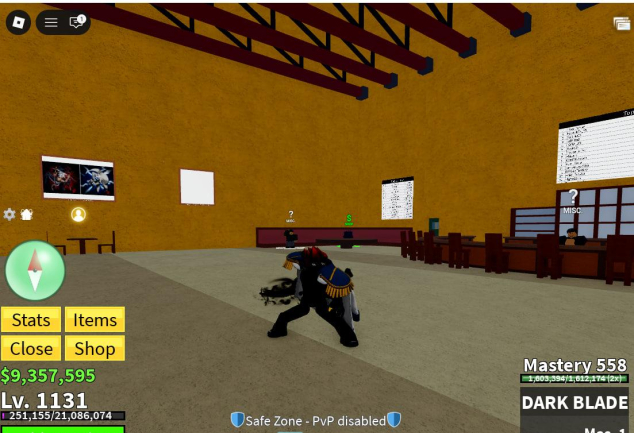 🟢Blox Fruits — 1131лвл, 9м денег, куплены геймпассы: Dark blade (1200rb), fast boats (350rb), 2x money (450rb), 2x mastery (450rb).