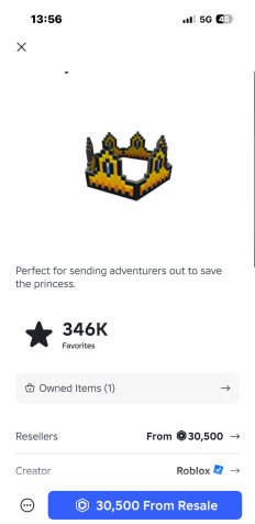 На аккаунте есть 8-bit Royal Crown на данный момент за 30500robux цена которой стремительно растёт