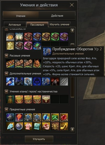 Описание: Выучено умение за Ул. Камень Рун «Пробуждение Оборотня» Ур. 2