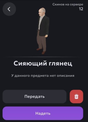 Подробное описание: Продам скин «Сияющий Глянец» на сервере 12 штук. Всё вопросы в личку.