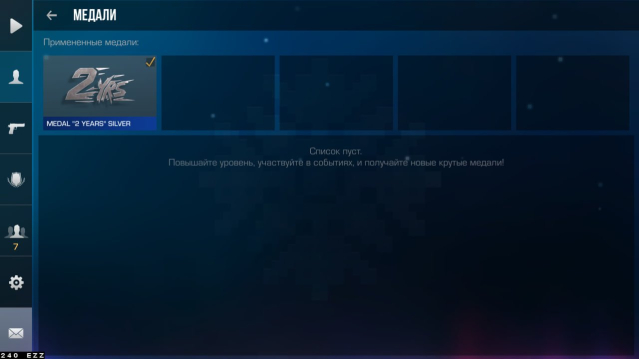 На аккаунте имеется 1 редкая медаль: 2 Years Silver(можно было получить очень давно за донат)