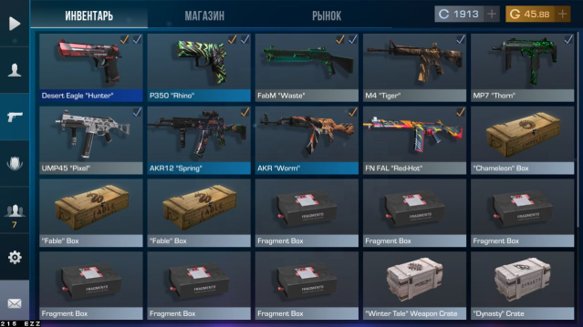 Инвентарь на аккаунте стоит +- 30 голды и еще 45 голды на балансе.
