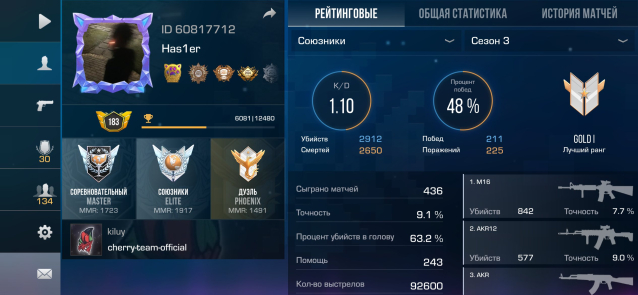 Звание: EliteКраткое описание: Старенький аккаунт играю с 3 сезона