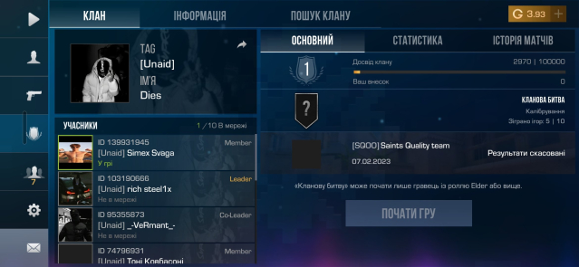 Аккаунт состоит в клане.