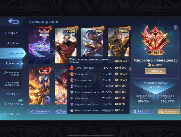 Краткое описание: 🔥МИРОВОЙ 30000🔥✅12 ЛЕГ✅💠35 ИЗЯЩНЫЕ💠⭐️59 ИЗЫСКАННЫЕ⭐️💎 25 КОЛЛЕКТОР💎🔴ФУЛЛ ХИРО🔴