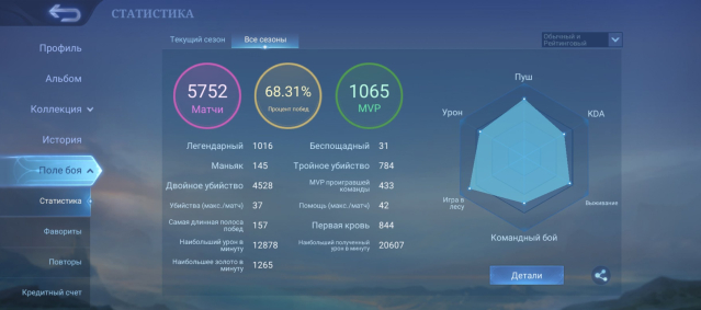 Процент побед: 68