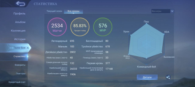 Процент побед: 85