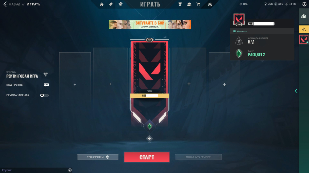 ⚡🔥 Аккаунт с актуальным (текущим) рангом расцвет 2 (Ascendant 2), 100-й уровень, 415 Radiant Point