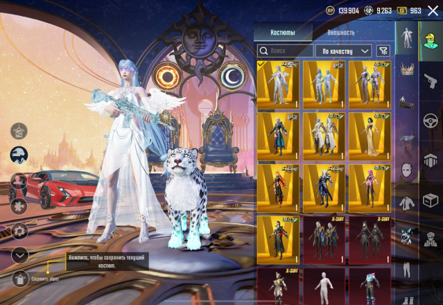 Костюм Х «Фараон» — 3 LVL 🔱, Костюм Х «Дравион» — 2 LVL ⚡, Костюм Х «Анухра» — 1 LVL 🐍