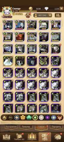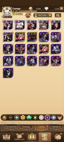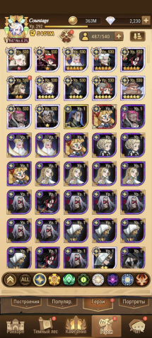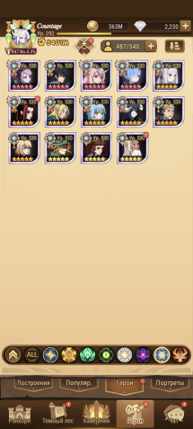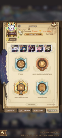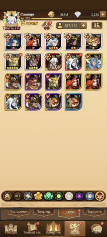 Общая сила 5401, 292 уровень персонажа, 10 lvl VIP, резонанс петомцев — 12 lvl, 4 анимированные аватарки, много рамок, огромное кол-во возвышенных, драконов, иномирцев, и главное — пробужденных героев!
