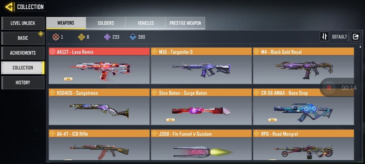 🔫 Скины оружия: 1 Мифик • 8 Легендарок • 233 Эпиков