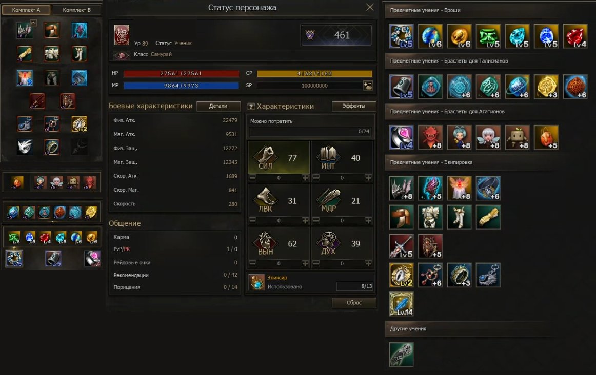Профессия: Самурай \Венец +8 \Талик Бая \Камни +5-+6\пояс благ +6