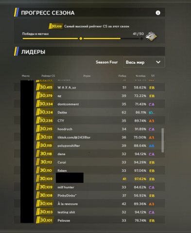 Краткое описание: CS2 Prime | Премьер-рейтинг 30.000 (4 сезон) | Золотая медаль (3 сезон) | 41 победа | 25 lvl
