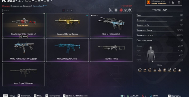 😈 Инженер: • FAMAE «Демоны» (9 модов), 9 золотых• Золотой Honey Badger• Honey Badger «Стужа»• Micro Roni «Ледяное сердце» 😈