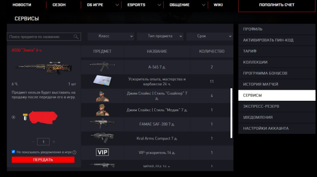 В сервисах куча предметов, оружие на время и внешки, так же там есть вип на 21 день в сумме, ускоритель мастерства опыта и баксов, на 20 дней в сумме!